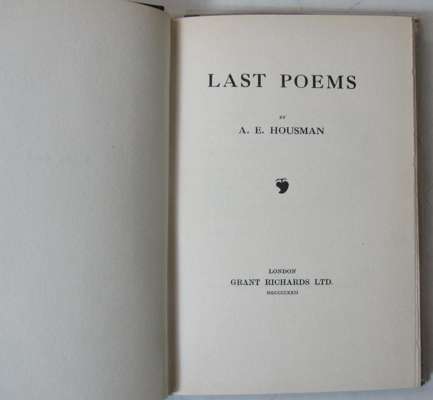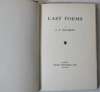 Last poems. London: Grant Richards Ltd. 1922. First edition, first impression, small 8vo., publisher's dark blue cloth, dustwrappers, wrappers a little dusty with nicks at extremities, small bookplate of J.O. Edwards
