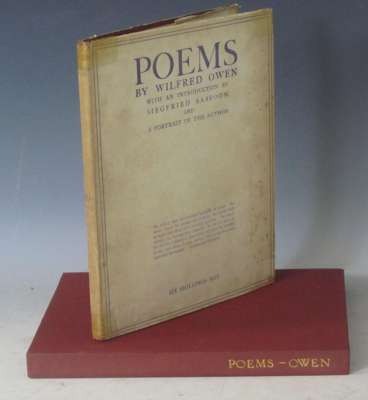 Poems. London: Chatto & Windus, 1920. First edition, frontispiece portrait, original red cloth with paper label to spine, dustwrapper, bookplate of John Johnson to paste-down endpaper, occasional spotting, cloth very slightly bubbled in a couple of places, dustwrapper a little browned and spotted, with a few small chips to spine and repaired in places, in slightly faded red slip case