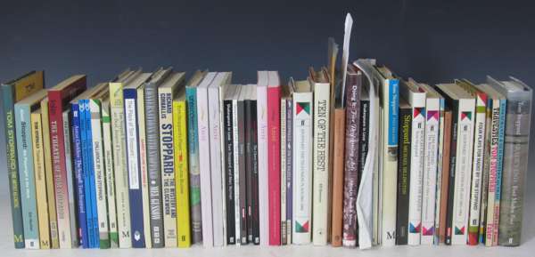 A collection of mainly adaptations, translations and collected works by Stoppard, to include: Mrozek, Slawomir Tango: translated by Nicholas Bethell; adapted by Tom Stoppard. London: Jonathan Cape, 1968. First edition, 8vo., publisher's black cloth, dustwrappers. (Baker & Wachs C1a); Schnitzler, Arthur Undiscovered country: an English version by Tom Stoppard. London: Faber and Faber, 1980. First edition, 8vo., publisher's printed wrappers, signed by Tom Stoppard on the half-title. (Baker & Wachs C2a); Nestroy, Johann On the razzle. London: Faber and Faber, 1980. First edition, 8vo., publisher's printed wrappers, signed by Tom Stoppard on the half-title. (Baker & Wachs C3a); Berman, Editor Ten of the best British short plays. London: Inter-Action Inprint [sic], 1979. 8vo., publisher's cloth dustwrapper, signed by Tom Stoppard on the front blank. (Baker & Wachs A16a, contains first edition of Dogg's our pet); Stoppard, Tom The television plays 1965-1984. London: Faber and Faber, 1993. First edition thus, 8vo., publisher's blue cloth, dustwrapper. (Baker & Wachs G9aA); [Idem] Is it true what they say about Shakespeare? (International Shakespeare Association occasional paper no. 2). Oxford, 1982. Pamphlet, 8vo., printed paper wrappers, inscribed "To Bruce with best wishes from Tom Stoppard." (Baker & Wachs F6); Glynn Boyd Harte A Spring collection London: Thumb Gallery, 1976. Pamphlet, oblong 8vo. (Baker & Wachs F4, Stoppard contributed an introduction), 34 other works by Stoppard, a small quantity of books on him, newspaper cuttings relating to his life and works and numerous programmes relating to productions of his plays; sold not subject to return
