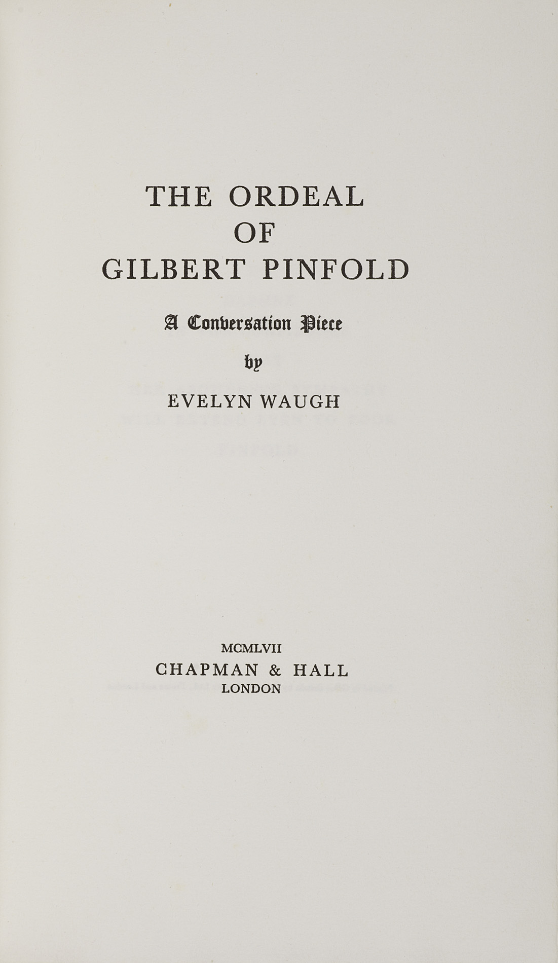 The ordeal of Gilbert Pinfold: a conversation piece, London: Chapman & Hall, 1957. First edition, 8vo., large paper, publisher's buckram, edges uncut, spine and part of upper board slightly sun faded, in a quarter red morocco and red linen solander box