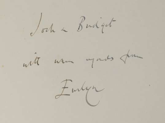 Note: One of 50 copies on large paper, reserved for the use of the author, and distributed by him to his friends. In this case it is inscribed to "Jock & Bridget with warm regards from Evelyn." The recipients were Sir John and Lady McEwen of Marchmont House, Berwickshire. Included is a copy of a letter from Bruce Ritchie to Auberon Waugh inquiring as to the recipients' identity and Auberon Waugh's signed reply identifying them as the McEwens.