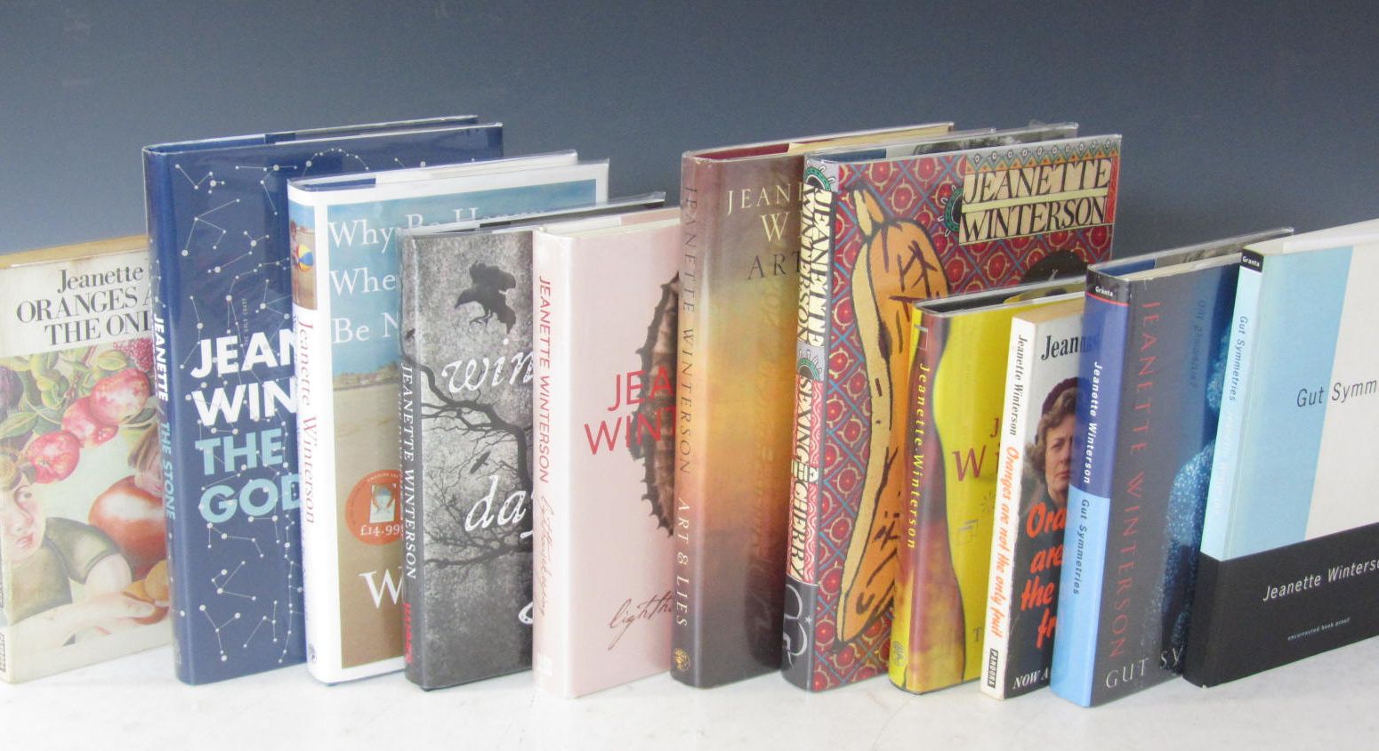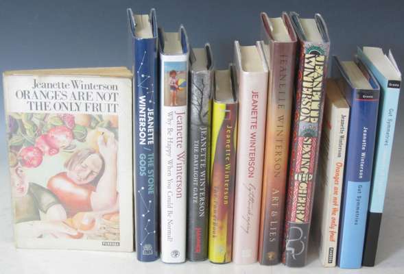 Oranges are not the only fruit. London: Pandora, 1985. First edition, signed by the author, original wrappers, some minor creasing; [Idem] Oranges are not the only fruit. London: Pandora, 1989. Signed by the author, original wrappers; [Idem] Sexing the cherry. London: Bloomsbury, 1989. First edition, signed by the author, dustwrapper; [Idem] Art & lies. London: J. Cape, 1994. First edition, signed by the author, dustwrapper; [Idem] Guy Symmetries. London: Granta, 1997. First edition, signed by the author, dustwrapper; Idem Guy Symmetries. London: Granta, 1997. Uncorrected proof copy, signed by the author, wrappers; [Idem] The power book. London: J. Cape, 2000. First edition, signed by the author, dustwrapper; [Idem] Lighthousekeeping. London: Fourth Estate, 2004. First edition, signed by the author, dustwrapper; [Idem] The stone gods. London: Hamish Hamilton, 2007. FIrst edition, signed by the author, dustwrapper; [Idem] Why be happy when you could be normal? London: J. Cape, 2011. First edition, signed by the author, dustwrapper; [Idem] The daylight gate. London: Hammer, 2012. First edition, signed by the author, all original boards except where noted (11)