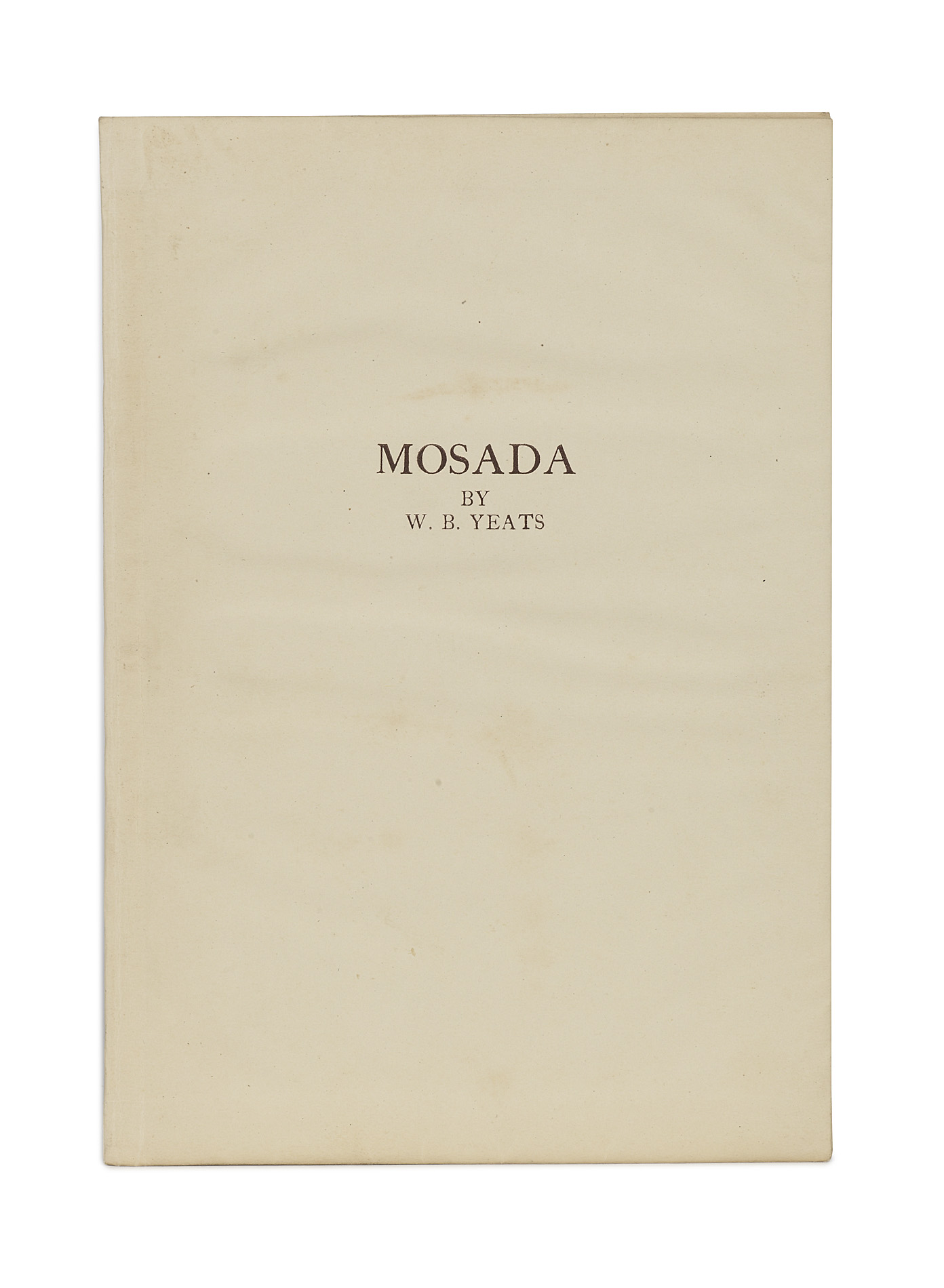 Mosada. Dublin: Cuala Press, 1943. 8vo., frontispiece, original cream parchment wrappers, uncut and unopened, original glassine wrappers, small split in upper glassine wrapper, slight warping of the parchment wrapper