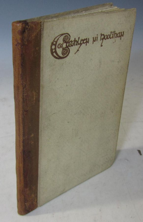 Cathleen ni Hoolihan: a play in one act and in prose. London: Cardoc Press, 1902. First edition, small 8vo., original quarter calf, paper boards, edges uncut, spine rubbed, boards a little dusty