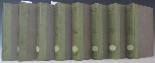 Note: Wade Nos. 75-81. The binding, presumably a remainder binding, appears to vary from Wade (p. 94) in two respects. The boards are grey paper and there are gold/pale brown silk markers in at least four of the volumes. Wade describes the remained binding as grey-green linen spines with light brown boards and without silk markers.