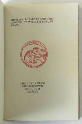 Michael Robartes and the dancer. Churchtown, Dundrum: The Cuala Press, 1920. First edition, 8vo., woodcut device printed in red, original quarter linen, grey paper boards, matching endpapers, uncut, unopened