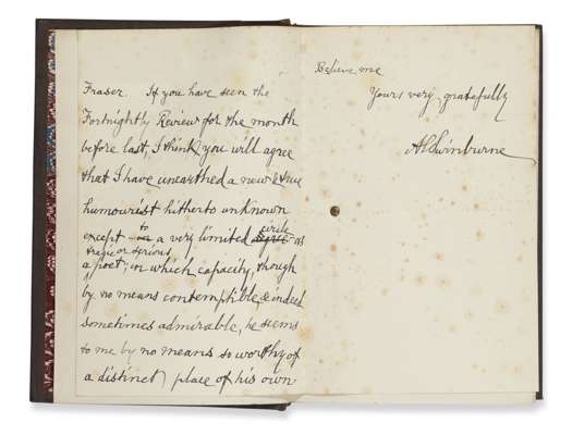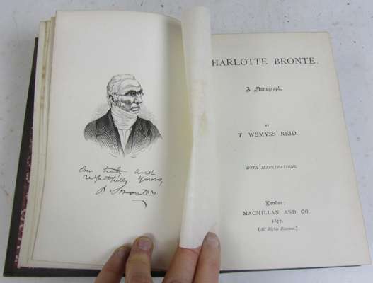 A note on Charlotte Brontë. London: Chatto & Windus, 1877. First edition, 8vo, with an A.L.S. from the author to John Skelton (1831-97), referring to having "unearthed a new & true humourist hitherto unknown" for Fortnightly Review; [bound with] Reid, T. Wemyss Charlotte Brontë. A monograph. London: Macmillan, 1877. 2 works in one volume, 8vo, morocco-backed cloth