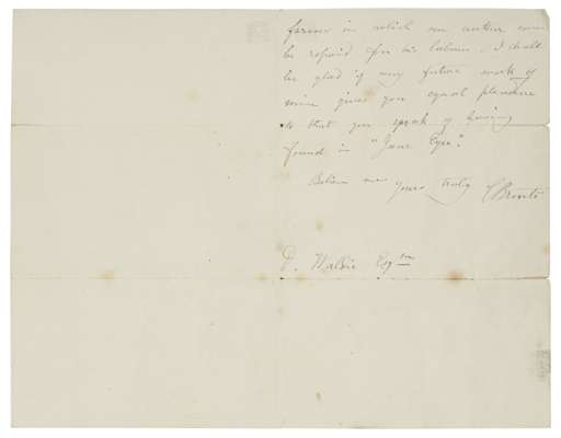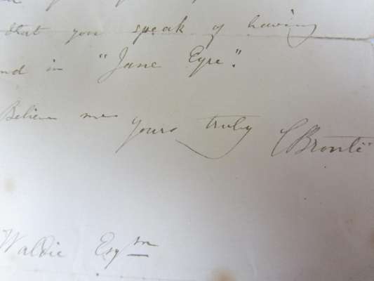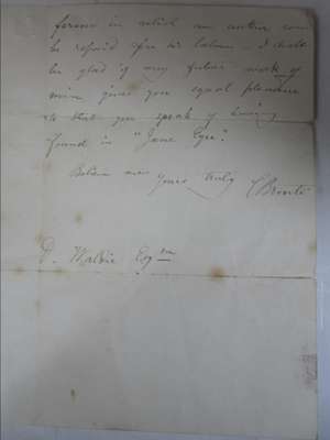 The letter tells us that Waldie was impressed by Jane Eyre, published in 1847 under the pseudonym 'Currer Bell', and was inspired to write to Brontë of his appreciation of the book. Brontë replies: