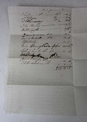 Note: The first page lists in a clerk's hand 32 members subscribing 10s 6d each with the exception of the first name, John Dalyell, who subscribes £1.1s. All but eight are marked as paid. The second page lists a further twelve members subscribing 10s 6d each, these in varying hands. It was a few years after this that the new gold medal was purchased from Mackay & Cunningham of Edinburgh.