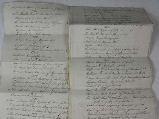 There are noticeable surges in membership at times (1805 & 1806 for instance) and the 1820s show a considerable number of new members who were in the service of the Honourable East India Company. The names reveal a wide range of influential names - peers, baronets, senior army and naval officers, writers and advocates, clergy, members of parliament, etc.