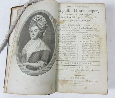 The experienced English housekeeper. London, 1794. 12mo, engraved portrait & 3 folding plates (1 lacking part), modern calf, some spotting; Armstrong, John The young woman's guide. Newcastle, [c.1818]. 8vo, engraved frontispiece & title & 9 plates, half calf, p.355/56 torn with slight loss, worn; [Kitchiner, William] The cook's oracle. London, 1823. Fifth edition, half calf, spotted, rebacked, rubbed Parkes, William Domestic duties. London, 1825. Second edition, 12mo, illustrations, contemporary calf, neatly rebacked; Leslie, Mrs Directions for cookery. Philadelphia, 1842. Sixteenth edition, 12mo, modern calf-backed boards, rather spotted; Leslie, Mrs New receipts for cooking. Philadelphia, [c.1854]. 12mo, original cloth, p.243-262 loose, spotted; [Rundle, Mrs M.E.] The new family receipt book. London, 1824. 12mo, modern red half calf gilt; Walsh, J.H. The English cookery book. London, 1859. 8vo, plates, red quarter cloth, worn; Child, Mrs The frugal housewife. London, 1832. 12mo, modern quarter calf, rather dust-soiled; sold not subject to return (9)
