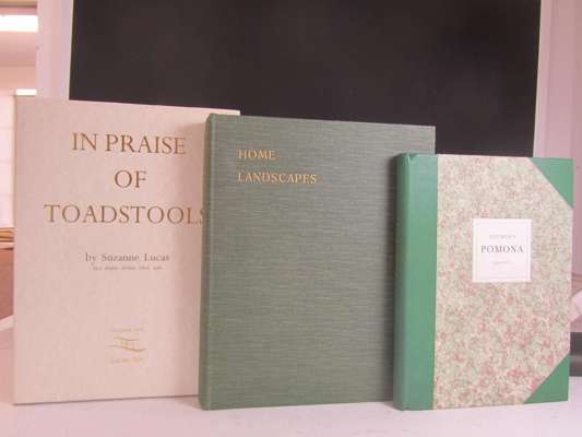 Bulmer's pomona. London: Fourth Estate, 1987. 4to, green half morocco, t.e.g.; Lucas, Suzanne In praise of toadstools. Lucas Art, 1992. Folio, volume 1 only, original cloth, dustwrapper; Robinson, W. Home landscapes. London, 1920. Large 4to, plates, original cloth, uncut; Jardine, W. The birds of Great Britain and Ireland. [c.1900]. 4 volumes, 12mo, coloured plates, original cloth, Compton, J. The spider. 1950; Howard, Len Birds and individuals. 1952; Crompton, John The hunting wasp. 1948, dust-jacket; and 12 others (18)
