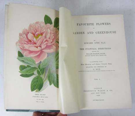 Favourite flowers of garden and greenhouse. London: F. Warne, 1896-97. 4 volumes, 8vo., 316 chromolithographed plates, tissue guards, contemporary green half calf, spines gilt, spines lightly faded, a clean copy