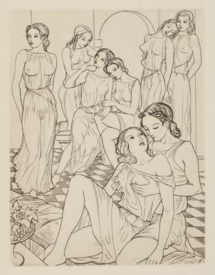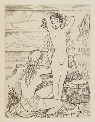 Heart's desire. Paris: Issued in Paris for private circulation only, [no date]. 4to, one of 70 copies, (not numbered), engraved title vignette and 7 engravings by John Buckland Wright, original vellum-backed blue cloth, uncut