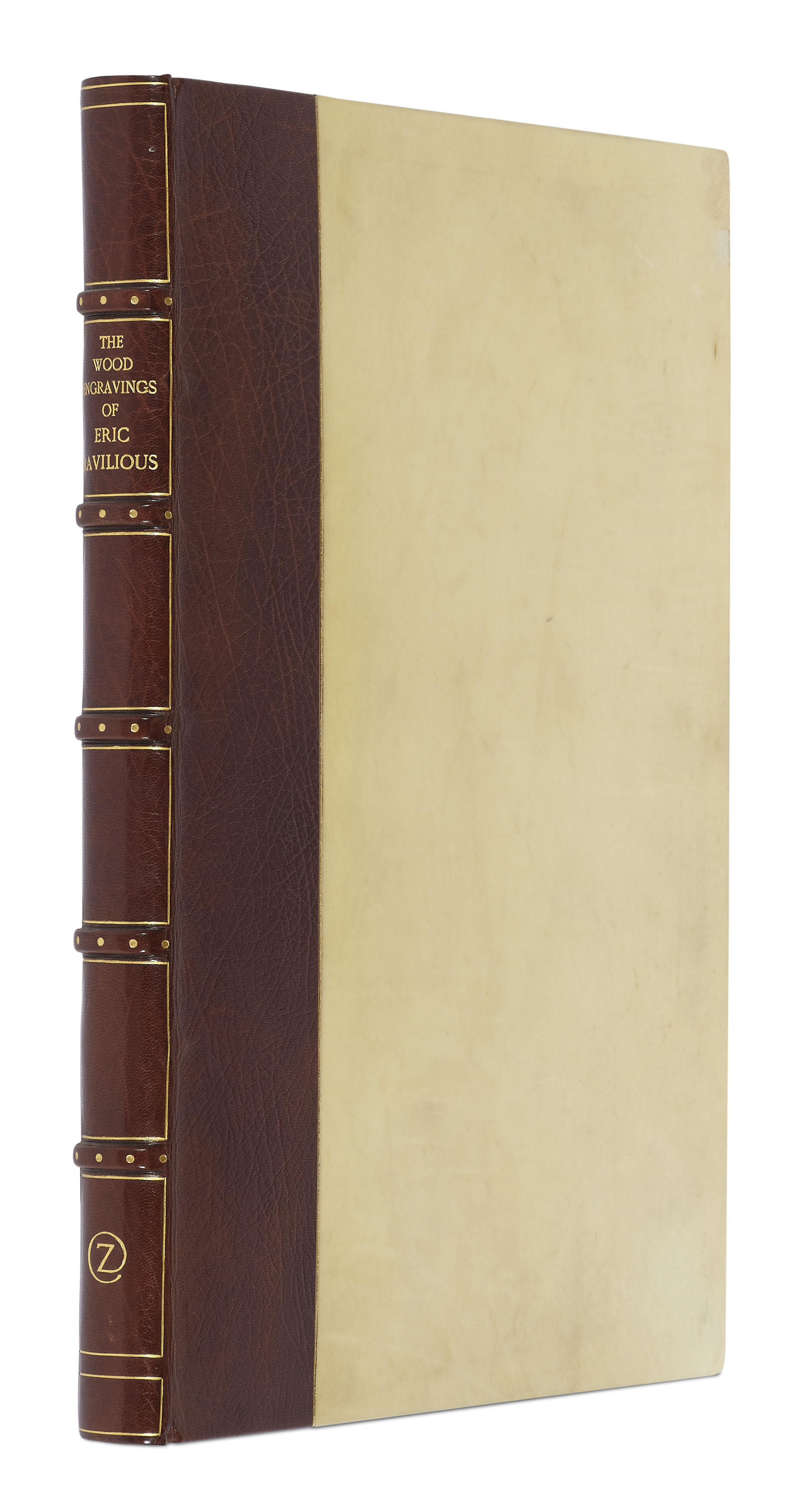 The wood-engravings of Eric Ravilious. London: Lion & Unicorn Press, 1972. Folio, [one of 500 copies], copy number F, number 6 of 7 copies reserved by arrangement with the Publishers for fine binding by Zaehnsdorf, brown morocco-backed vellum, spine gilt, gilt edges, morocco-edged lines slipcase