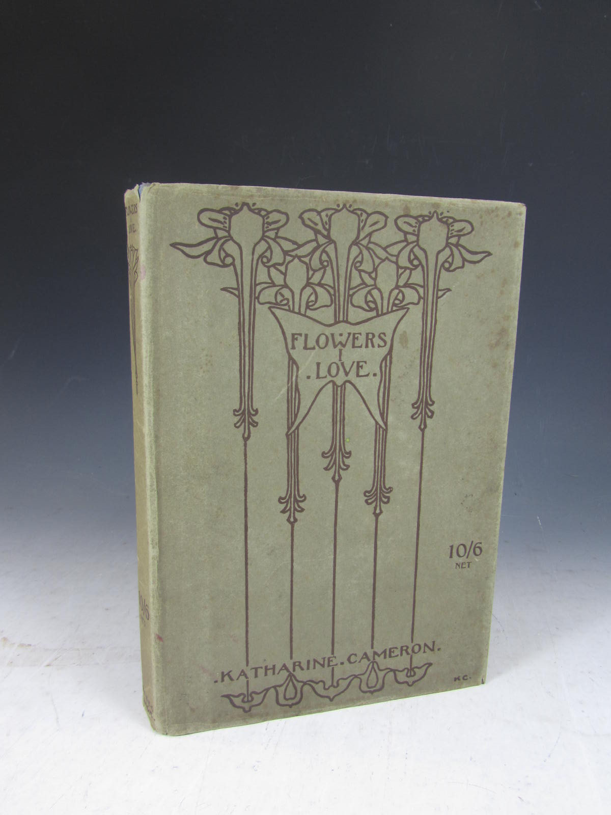 The flowers I love. London, [1916]. 4to, signed by Edward Thomas on front pastedown, with photograph of him pasted in above his signature, signed photograph of Katherine Cameron pasted onto half-title, and with bookplate of Arthur Kay designed by Katherine Cameron, 24 tipped in colour plates by Katherine Cameron, original cloth-backed pictorial boards, dustwrapper