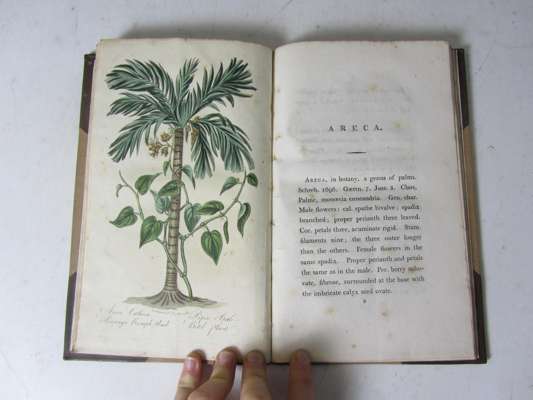 Note: Hertz describes himself on the title as a Surgeon Dentist. He discusses in detail the cleaning the teeth and gums and the medicinal properties of various plants used in tooth-powder including the areca nut, betel leaves, piper betel, as well as James Lynd's observations on the areca and betel and a note on prepared charcoal.The hand coloured engraving illustrates the plants Areca Cathecu and the Piper Betle. Not in Poletti or Weinberger.