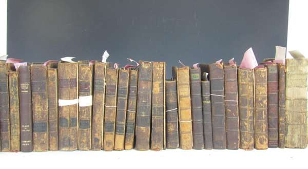 An essay on the most effectual means of preserving the health of seamen in the Royal Navy. Second edition, 1762, lacking the last leaf (after "6") [the second item, bound after Trotter, Thomas Observations on the scurvy. 1792. Bisset, Charles Medical essays and observations. Newcastle upon Tyne, 1766; Bissett, Charles An essay on the medical constitution of Great Britain. 1762. Cover detached; Blacrie, Alexander A disquisition on medicines that dissolve the stone. 1771; Covers detached; Black, William An arithmetical and medical analysis of the diseases and mortality of the human species. 1789. Cover detached; Black, William A comparative view of the mortality of the human species. 1788. Covers detached; Black, W. An historical sketch of medicine and surgery. 1782. Folding chart, half calf, rebacked; Blackmore, Richard Discourse on the gout. 1726. Lacks one cover, other detached; Blackmore, Richard A treatise of consumptions and other distempers. 1724. One cover detached; Blackmore, Richard A treatise upon the small-pox. 1723. bound with another by Blackmore, covers detached; Desault, Monsieur Parisian chirurgical journal. 1794. 2 volumes, lacking one board, one board detached; Blane, Gilbert Observations on the diseases incident to seamen. 1785. Spine split, cover detached; Cullen, William Institutions of medicine. Edinburgh, 1785. Cover detached; Blackmore, Richard Dissertations on a dropsy. 1727. Covers detached; Chirac, Mr. Three chirurgical dissertations. 1750. One cover detached; Farr, Samuel An essay on the medical virtues of acids. 1760. 12mo, bound with another, quarter calf; Fothergill, John A complete collection of the medical and philosophical works. 1781. 2 (of 3) plates, one cover detached; Glass, Thomas Commentari duodecim de febribus. 1742. One cover detached; Huxham, John An essay on fevers. 1750. Van Horne, J. Micro-techne. 1717. 12mo, dampstained; Austin, W. A treatise on the origin and component parts of the stone. 1791. Half calf; Moss, William An essay on the management, nursing and diseases of children. Egham, 1794. Lacks one board, one cover detached; Kite, Charles Essays and observations... Yellow resin from Botany Bay. 1795. Covers detached; Kite, Charles An essay on the recovery of the apparently dead. 1788. 3 folding tables, original boards, uncut, lacks the 3 plates and plan; James, R. The modern practice of physic. 1746. 2 volumes, head of two titles torn away (without loss of text), two covers detached; [Anatomy] Anatomy epitomized and illustrated... by M.N. 1737. 17 folding plates, lacks covers, strip excised from head of title; Baylies, William Practical reflections on the uses and abuses of Bath waters. 1757. Half-title, cover detached; Astruc, John A treatise on all the diseases incident to women. 1743. Title detached, lacking one board; Astruc, John A treatise on the fistula of the anus. 1738. One folding plate, one board detached; Astruc, John A treatise of the venereal disease. 1737. 2 volumes, binding broken, several leaves loose, covers detached; Swediaur, F. Practical observations on venereal complaints. Edinburgh, [1787]; Sintelaer, J. The scourge of Venus and Mercury. 1709. Frontispiece & 1 plate (damaged), covers detached; Smith, Samuel An essay on the causes of the variety of complexion and figure. 1789. Half calf, lacks upper board; Sydenham, Thomas The entire works. 1742. Original wrappers; Sydenham, Thomas The whole works. 1722. Lacking one board, one detached; [Turner, Daniel] A discourse concerning fevers. 1727. Covers detached; Turner, Daniel A discourse concerning fevers. 1732. Lacks upper board, lower detached; Trotter, T. Observations on the scurvy. Edinburgh, 1786. Half calf, Tissot, Dr. Advice to the people in general. 1765. Covers detached; Thompson, Thomas Medical consultations on various diseases. 1773; Weldon, W. Observations on... puncturing the bladder. [1793]. Half calf; Vaughan, Walter An exposition of the principles of anatomy and physiology. 1791. 2 volumes, half-titles, hinges weak; Turner, Daniel Syphilis. 1724. Lacks one board, one detached; [Turner, D.] Syphillis. 1727. Engraved portrait, covers detached Wenzel, M. de A treatise on the cataract. 1791. Engraved plate; bound with another, half calf; [Turner, D.] The art of surgery. 1736. Volume 1 only, spine split, boards detached; all contemporary calf except where noted, most with spotting and dust-soiling, all worn, all with RCSI library stamp to title and occasionally another leaf; sold not subject to return (50)
