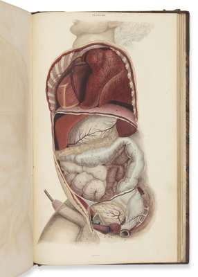 A system of anatomical plates of the human body. Edinburgh: W.H. Lizars, [1822-27]. First edition, folio, engraved vignette-title, RCSI library stamps to title, 97 (of 101) plates; lacking plate 9 of part 2 and plates 18-20 of part 3, contemporary half calf, slightly spotted; sold not subject to return