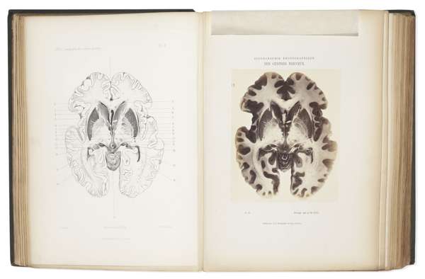 Iconographie photographique des centres nerveux. Paris: J.B. Ballière et Fils, 1873. 4to, atlas volume only, signed and inscribed by author on title-page, 70 photographic plates and 64 lithographs, original green cloth gilt, some slight darkening to margins, title-page darkened, RCSI library stamps to title-page and versos of some plates, covers soiled and a little rubbed, shelf lean