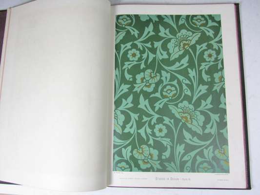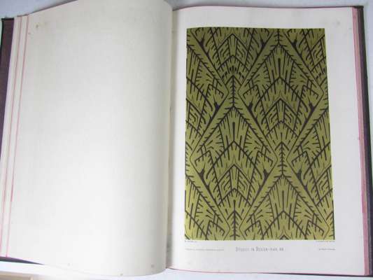 Studies in design. London: Cassell, Petter & Galpin, [1874-76]. Folio, 40 (of 60) plates after Dresser, 38 finely chromolithographed, 2 uncoloured, (the missing plates never bound in), lacks title, original cloth with large paper label on upper cover