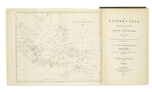 The eastern seas... London: Wm. Allen..., 1837. First edition, 8vo, 4 folding maps, original[?] green embossed cloth gilt, Cruising Association bookplates, blind-stamps and gilt stamps to upper cover and spine, very slight offsetting onto maps, covers a little rubbed and faded with some chipping to spine