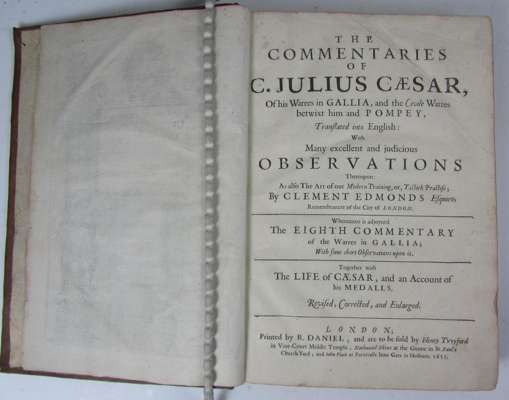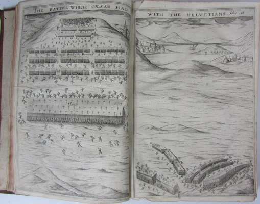 The commentaries, translated by Clement Edmonds. London: H. Wwyford, 1655. 4to, engraved additional title, portrait & 14 engraved plates, several double-page, contemporary calf, [Wing C199; ESTC R17666], 4 plates loose, one with side margins trimmed