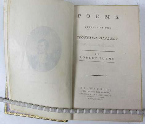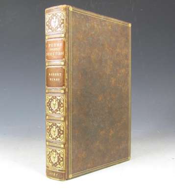 Poems, chiefly in the Scottish dialect. Edinburgh: for the author, 1787. Second edition, first issue with "Boxburgh" for "Roxburgh" in list of subscribers, and correct reading "skinking" on page 263, 8vo, engraved portrait after A. Naysmyth, list of subscribers, late 19th or early 20th century mottled calf gilt by Morrell of London, neat small glossarial notes at the foot of many pages