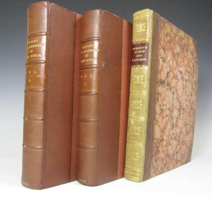 Letters and journals of Lord Byron, edited by Thomas Moore. London: J. Murray, 1830. 2 volumes, 4to, later half calf, t.e.g.; Strutt, Joseph Glig-Gamena Angel-Deod, or the sports and pastimes of the people of England. London, 1801. 4to, hand-coloured frontispiece & 39 hand-coloured plates, contemporary half calf, neatly rebacked, spine gilt (3)