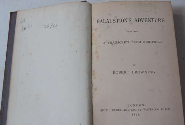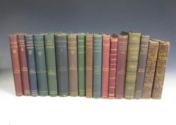 The Kiltartan poetry book… Dundrum: The Cuala Press, 1918. First edition, 8vo; Waugh, Evelyn Put out more flags, 1964. First edition, 8vo; Lee, Laurie Cider with Rosie, 1959. First edition, first issue; Lawrence, D.H. The story of Doctor Manente… Florence: G. Orioli, 1929. First edition; [Idem] The Prussian officer and other stories. London, 1914; Betjeman, Sir John A nip in the air, 1974; Eberhart, Richard Poems, new and selected. Norfolk, Conn., 1944; [Idem] Undercliff. Poems 1946-1965. New York: O.U.P., 1953.; [Idem] The quarry. New York: O.U.P., 1964; Stoppard, Tom The real thing. [s.l.]: Reprinted by permission of Faber and Faber, [n.d.]. Broadside; Roethke, Theodore Open house. New York: A.A. Knopf, 1941. First edition; [Idem] The lost son and other poems. New York: Doubleday & Co., 1948. First edition, signed by the author on endpaper; Carey, Peter Bliss, 1981; [Idem] Illywhacker, 1985; [Idem] Jack Maggs, 1999; Browning, Robert Balauston's adventure: including a transcript from Euripides, 1871. First edition; [Idem] Prince Hohenstiel-Schwangau: saviour of society, 1871. First edition, 12mo; Coleridge, Samuel Taylor Specimens of the table talk, 1835. First edition, 2 volumes; and a quantity of others; Thackeray, William Makepeace Doctor Birch & his young friends, 1849. First edition; [bound with] Our street, by Mr. M.A. Titmarsh, 1848. Second edition; [bound with] Rebecca and Rowena, 1850. First edition; [AND] The Rose and the ring…,1855. Second edition, 8vo; [Evans, (Marian) "George Eliot"] Felix Holt the radical, 1866. First edition, 3 volumes, 8vo; and others, sold not subject to return (quantity)