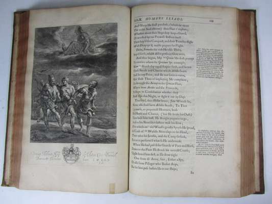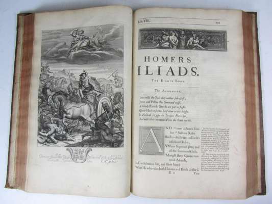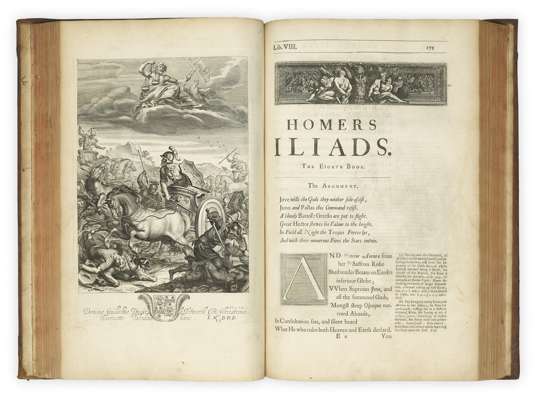 Homer his Iliads translated, adorn'd with sculpture. London: T. Roycroft, 1660. Large folio, engraved portrait, engraved frontispiece, and 46 (of 50) plates, eighteenth century calf, a few small wormholes at beginning, mainly marginal, a few repairs, very soundly rebacked