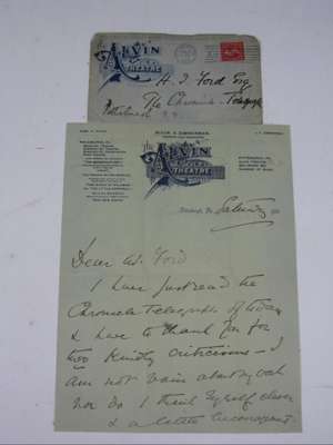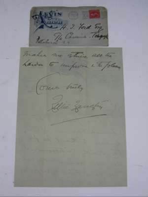 Autograph letter signed from Lillie Langtry to playwright and lyricist, B.C. Stephenson, 1900 (but undated), on 2 sides of notepaper, 25x15cm, headed 15.Tedworth.Square.S.W., the letter refers to Stephenson and Troubridge's play, A Great Lady, with Langtry requesting that she be considered for the play, the letter is signed Lillie de Bathe, referring to her husband at the time, Hugo Gerald de Bathe; [Idem] Autograph letter signed from Lillie Langtry to 'Mr Ford' (assumedly critic in the Chronicle Telegraph), with franked envelope dated 1903, written on 2 sides of headed notepaper from The Alvin Theatre, Pittsburgh, 27.5x21cm, the letter thanks Mr Ford for his "kindly criticisms" (2)