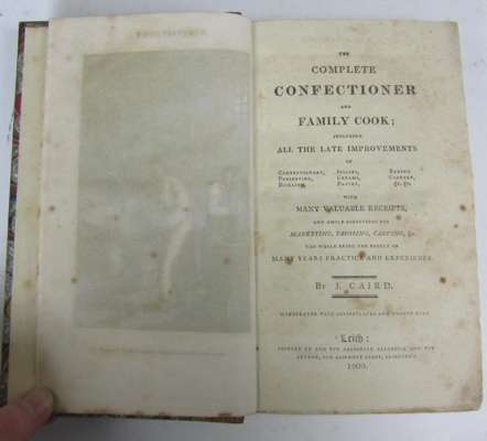 The complete confectioner... Leith: Archibald Aliardice..., 1809. 8vo, engraved frontispiece, 7 plates on 4 folding sheets, modern quarter tree calf, spotted and darkened