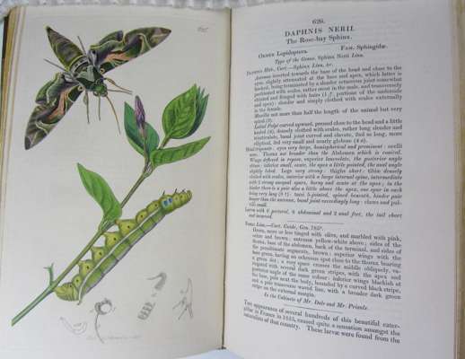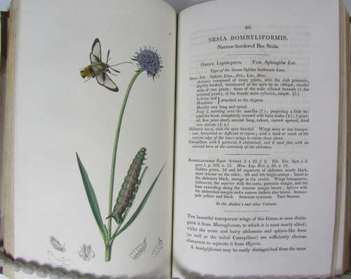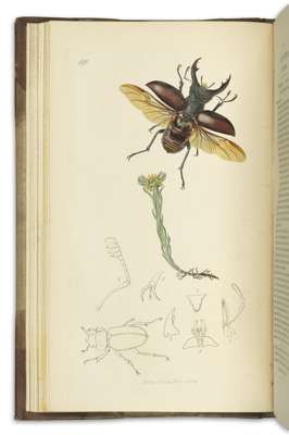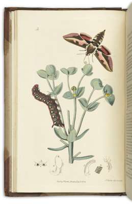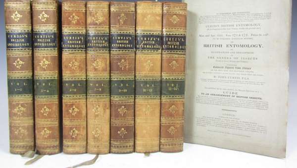 British entomology. London: for the author, 1824-1839. Volumes 1-14 in 7, 8vo, and 8 issues in parts, 725 hand-coloured engraved plates (of the 770 in the complete set), 7 volumes bound in contemporary half calf, spines gilt, slightly rubbed, five volumes with joints splitting, 8 original parts in wrappers, apart from occasional faint offsetting very clean