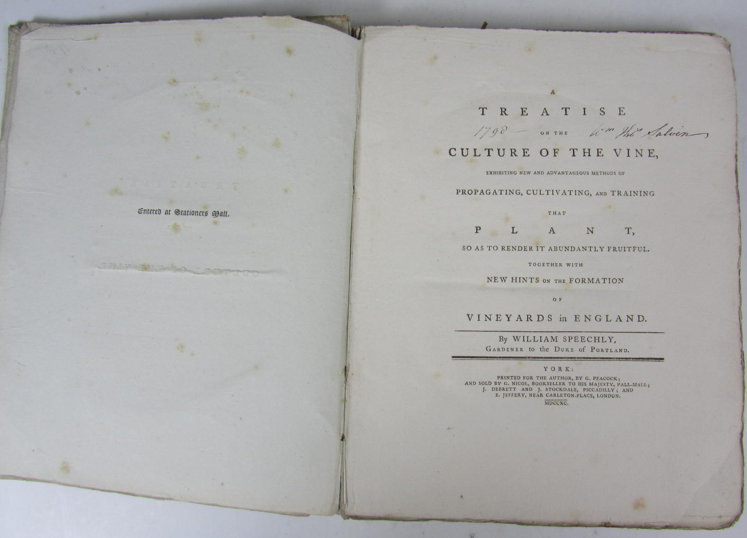 A treatise on the culture of the Vine. York: for the author, 1790. First edition, 4to, half-title, list of subscribers, 5 plates (3 folding), original boards, uncut, spotting, worn, covers detached