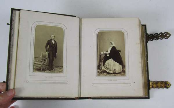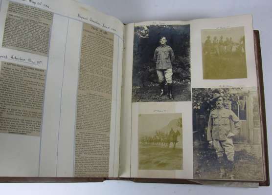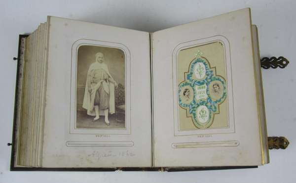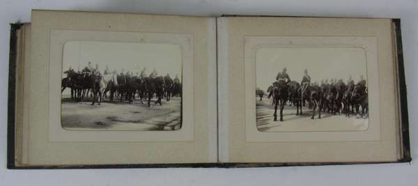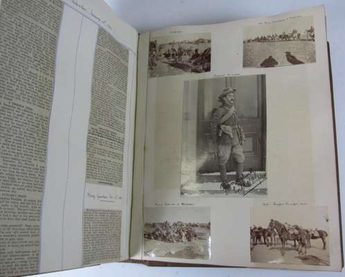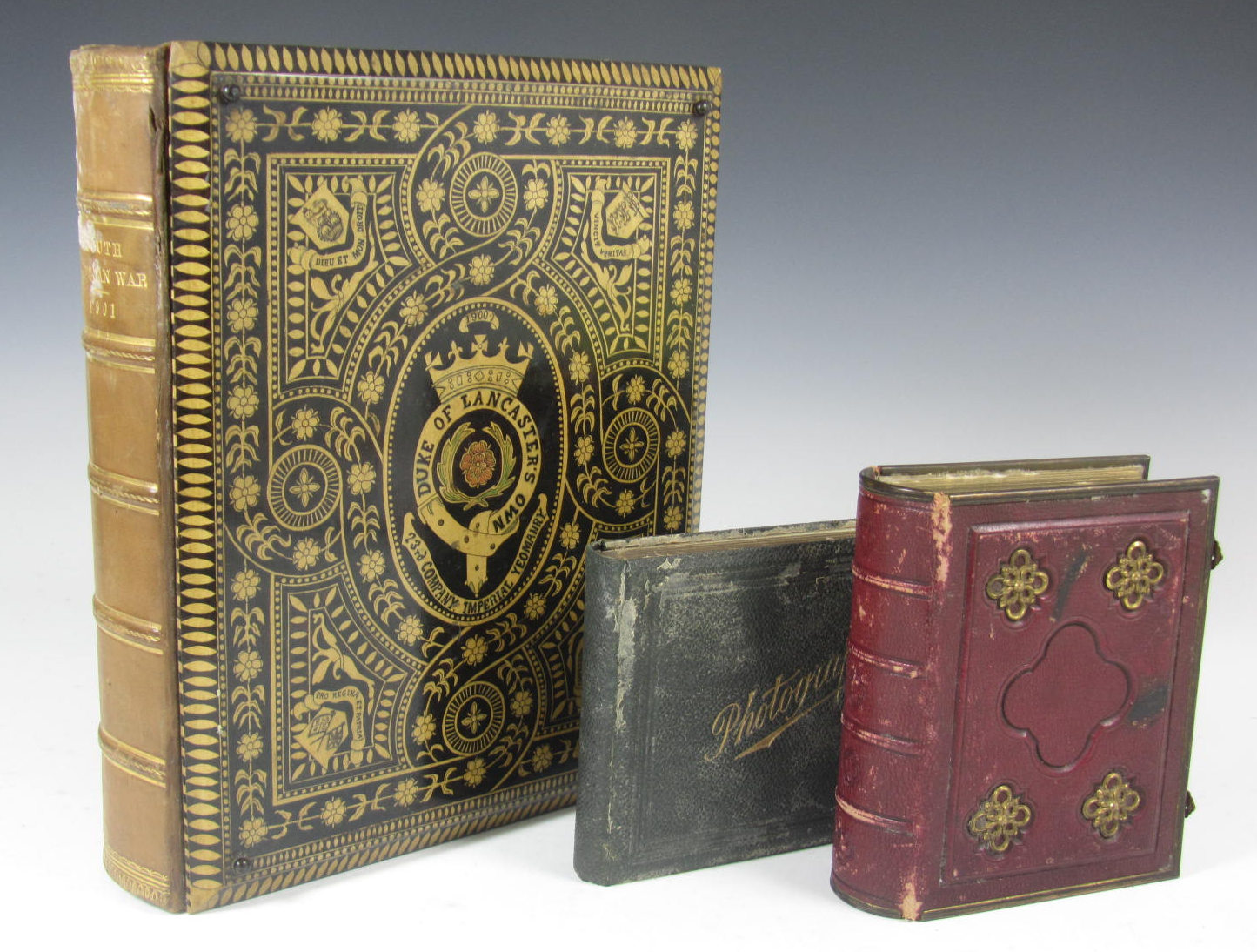 Album of newspaper cuttings and photographs of Boer War, S. Africa, compiled by Capt. Kemp, mostly portraits, a few of cavalry, hospital, landscape, calf-backed decorated wood, g.e.; and 2 small albums, one of Duke of Lancaster's Own Yeomanry in England (images 10 x 7cm), one with carte de visites, including Victoria & Albert, Bismarck, John Bright, David Livingstone, &c. (3)