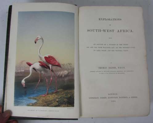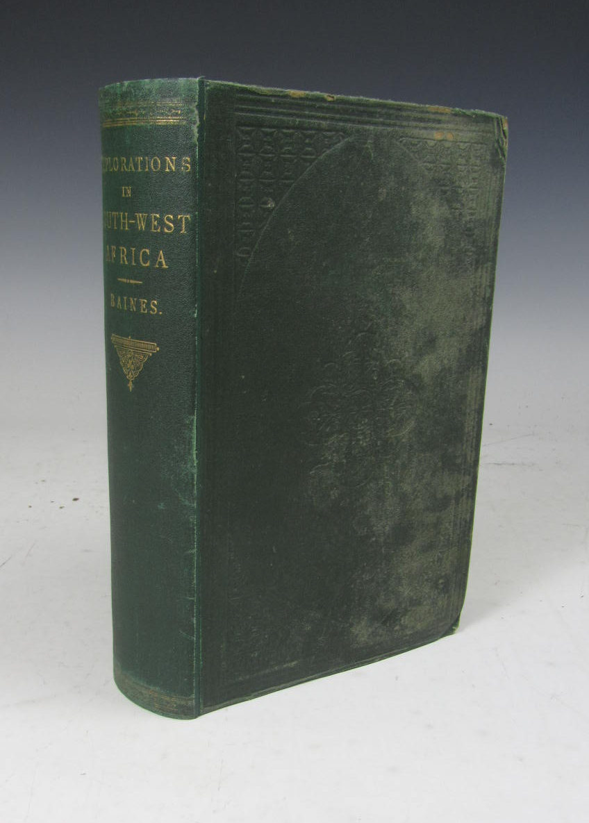 Explorations in south-west Africa. London: Longman, Green, Longman, Roberts, & Green, 1864. First edition, 8vo, 3 folding maps, colour frontispiece and 8 plates, ownership inscription to endpapers, original green cloth gilt, some light soiling/rubbing to covers