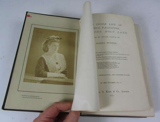 The inner life of Syria, Palestine, and the Holy Land. London: Henry S. King & Co., 1875. 2 volumes, 8vo, 2 photographic frontispieces, 2 colour plates, folding map, original cloth, slight fading to spines, a little cloth lacking on volume 2 (2)
