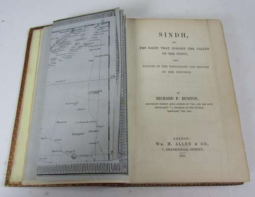 Sindh... London: W. H. Allen & Co., 1851. First edition, 8vo, folding map on blue paper, elaborate red morocco gilt, g.e., bookplate to paste-down endpaper, lacking front free-endpaper, notes to endpaper, some rubbing [Penzer p.40]