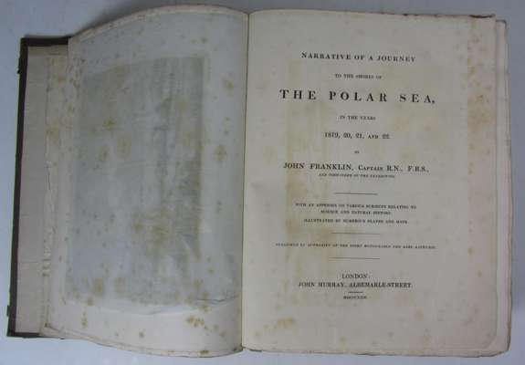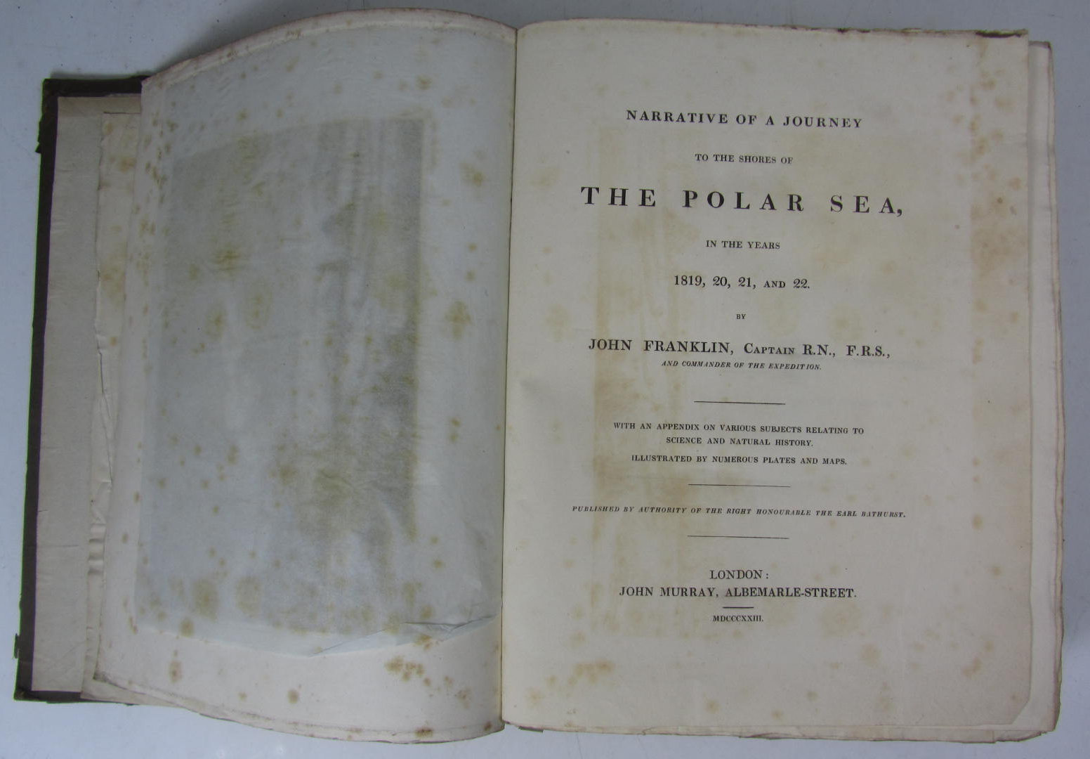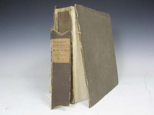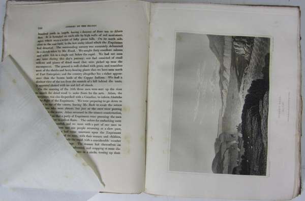 Narrative of a journey to the shores of the Polar Sea, in the years 1819, 20, 21, and 22. London: John Murray, 1823. First edition, 4to, [16], 783; 4 folding maps (one hand-coloured), 30 plates (including 12 hand-coloured aquatints), tissue guards, original boards, uncut, [Abbey Travel 635], a few spots, boards and spine detached and spine lacking top and base