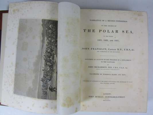 Narrative of a second expedition to the shores of the Polar Sea, in the years 1825, 1826 and 1827. London: J. Murray, 1828. First edition, 4to, 31 engraved plates, 6 folding maps (one loosely inserted), 19th century half calf gilt, a little light spotting