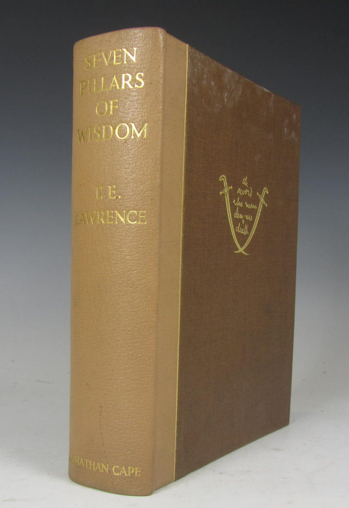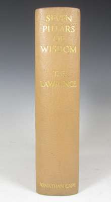Seven pillars of wisdom, a triumph. London: J. Cape, 1935. 4to, limited edition, number 691 of 750 copies, 57 plates, 4 maps, original pigskin-backed buckram board, t.e.g., others uncut