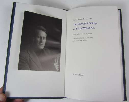 The sayings & doings of T.E. Lawrence. The Fleece Press, 1994. First edition, large 8vo, limited to 300 copies, one of 30 bound in dark blue goatskin and with a set of the original prints of the six portraits of T.E. Lawrence, plates, folding box; Knowles, Richard Cats and landladies' husbands. T.E. Lawrence in Bridlington. The Fleece Press, [1995]. First edition, limited to 400 copies, one of 50 bound in quarter leather, housed in a slipcase and with a photographic print in pocket at end, slipcase (2)