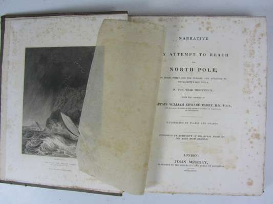 Narrative of an attempt to reach the North Pole. London: J. Murray, 1828. First edition, 4to, folding chart and 6 engraved plates, original boards, uncut and largely unopened