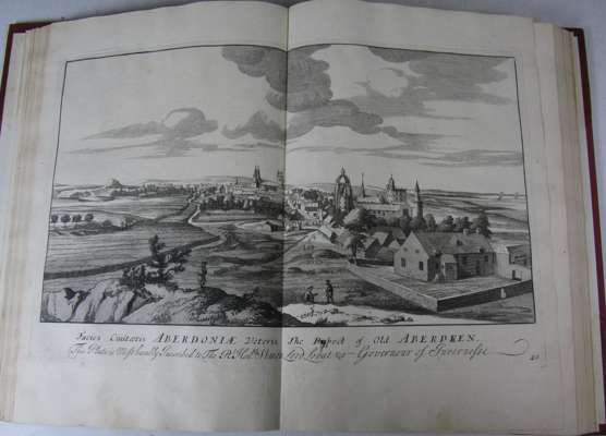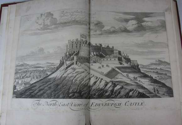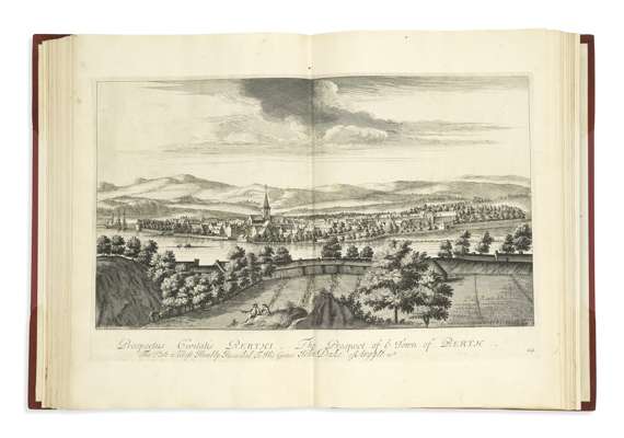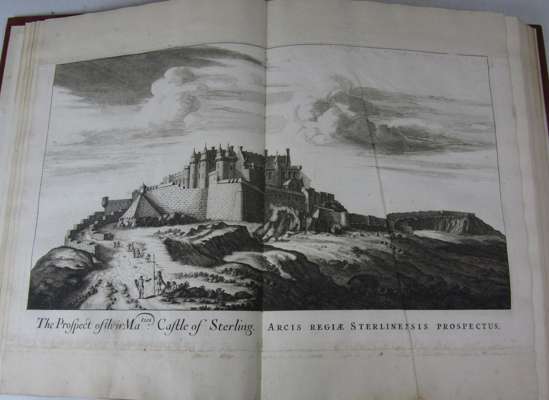 Theatrum Scotiae. London: D. Browne [& others], 1718. Folio, title printed in red and black, engraved dedication, 60 double-page engraved plates, twentieth century red half morocco, spine gilt, 9 with top and lower margins renewed (a few torn along join), a few stains and spots, a few with short marginal tear