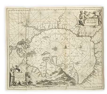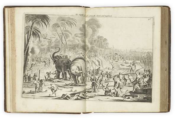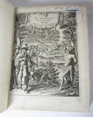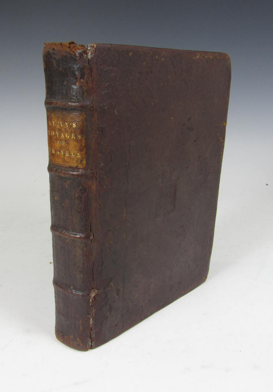 The voiages and travels of John Struys.London: Abel Swalle, 1684. 4to, engraved title-page, folding map and 19 engraved plates, contemporary calf rebacked with blind-stamped crests to covers, ownership signature to title-page, occasional ink notations, some rubbing, joints splitting slightly [ESTC R2022821/R4916]
