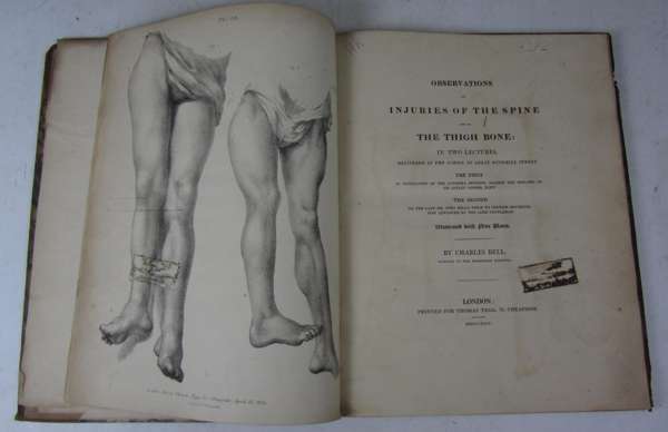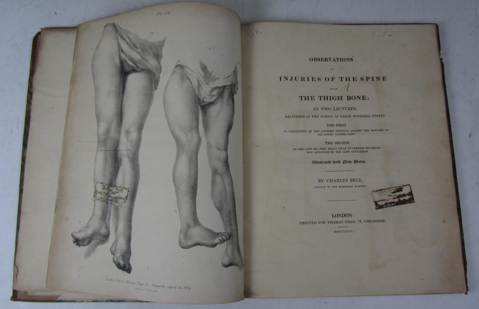 Observations on injuries of the spine and of the thigh bone. London: T. Tegg, 1824. 4to, 9 lithographed plates, half calf, RCSI library stamp to title, some spotting, boards detached, lacks spine