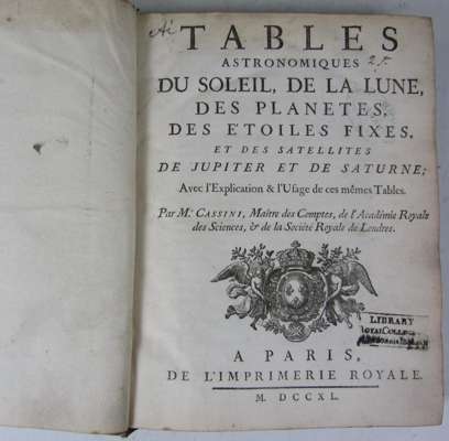 Tables astronomiques du soleil, de la lune. Paris: l'Imprimerie Royale, 1740. 4to, 2 parts in one volume, 5 folding plates, errata leaf, contemporary calf, RCSI library stamps on title, slightly spotted, extremities worn [Adams W243; M1837. cf. Haskell F. Norman Lot 231]