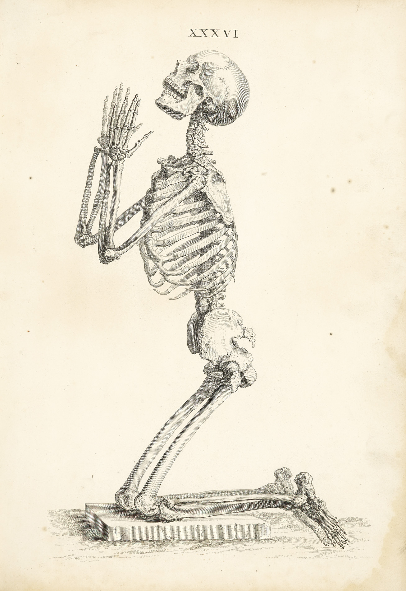 Osteographia, or the anatomy of the bones. London: [William Bowyer for the author], 1733. First edition, folio, title with engraved vignette, 56 engraved plates, contemporary half calf, lacks the dedication and 25 pp. of text, RCSI library stamp to title, some plates waterstained towards end, title dust-soiled and stained, worn