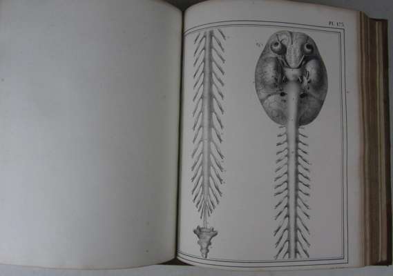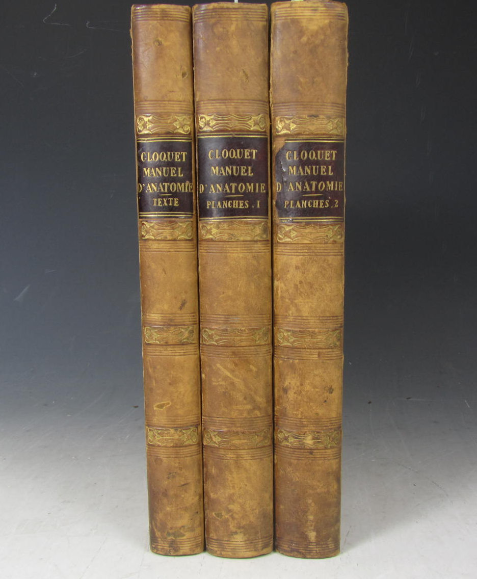 Manuel d'anatomie descriptive du corps humain. Paris: Béchet Jeune, 1825. 3 volumes, 4to, lithographed title (to atlas, part 1) & 240 (of 340) lithographed plates, contemporary half calf, RCSI library stamp to title versos, slightly spotted; [Wellcome Library Catalogue Record No. 4060070]; sold not subject to return